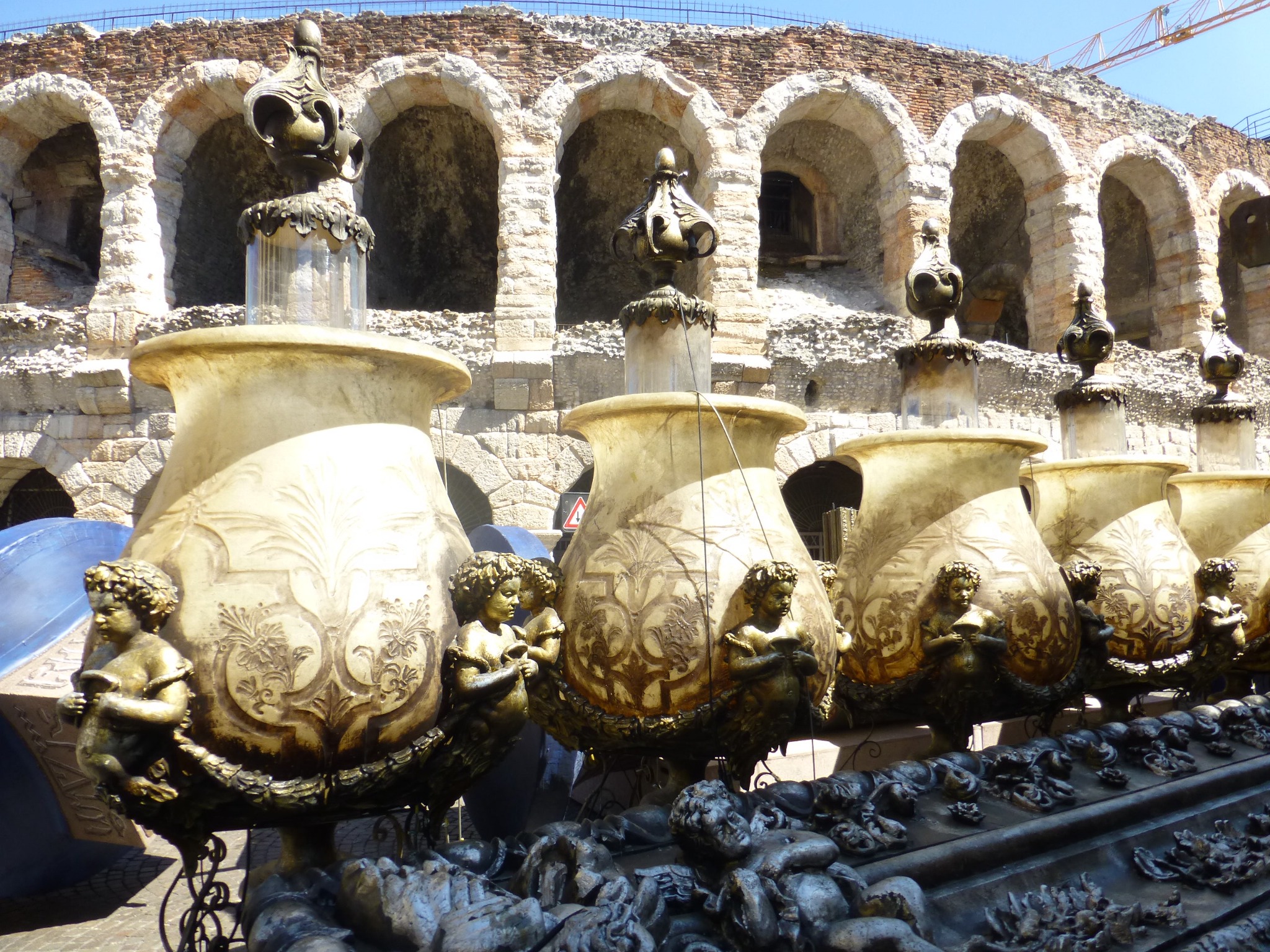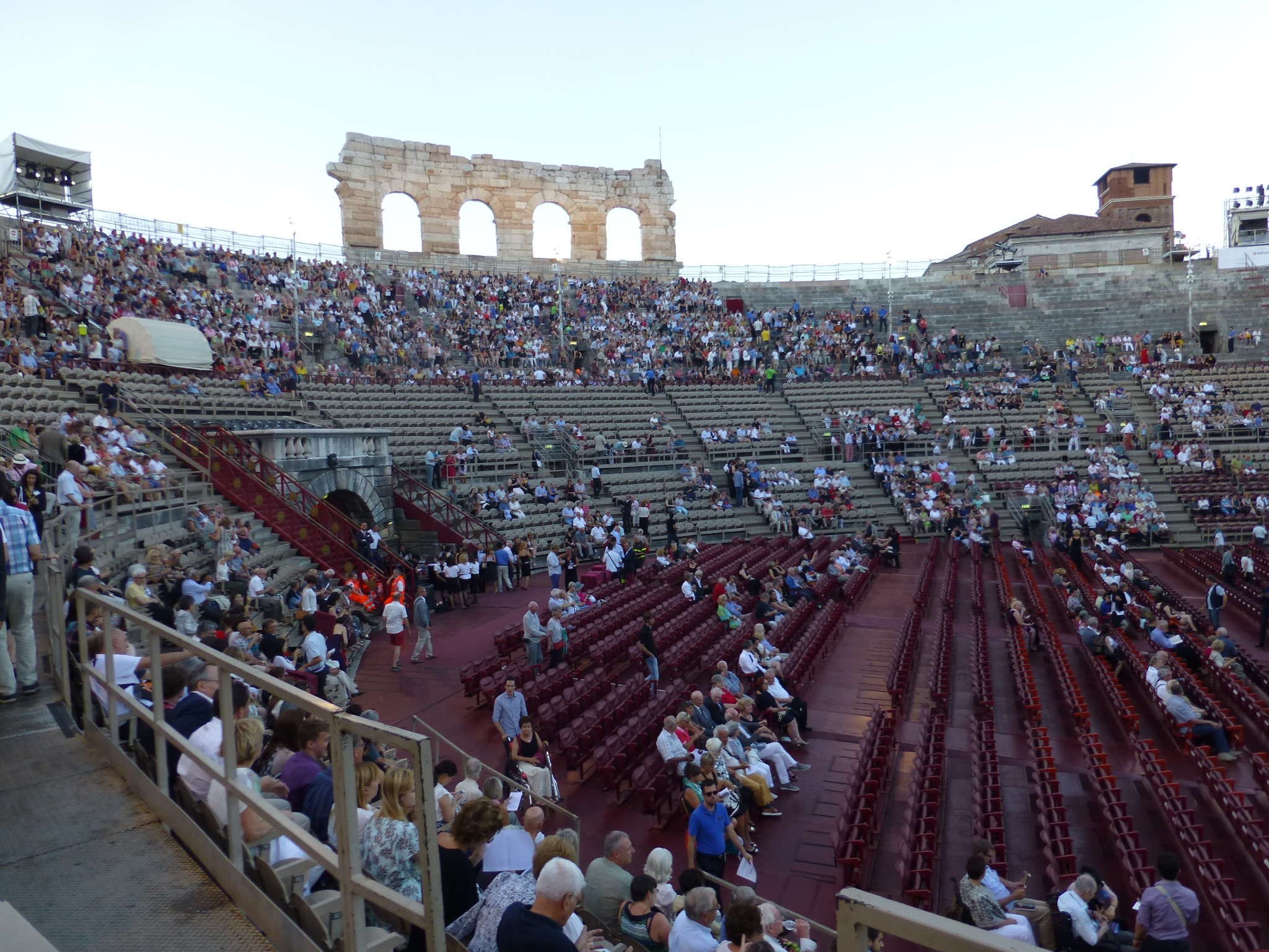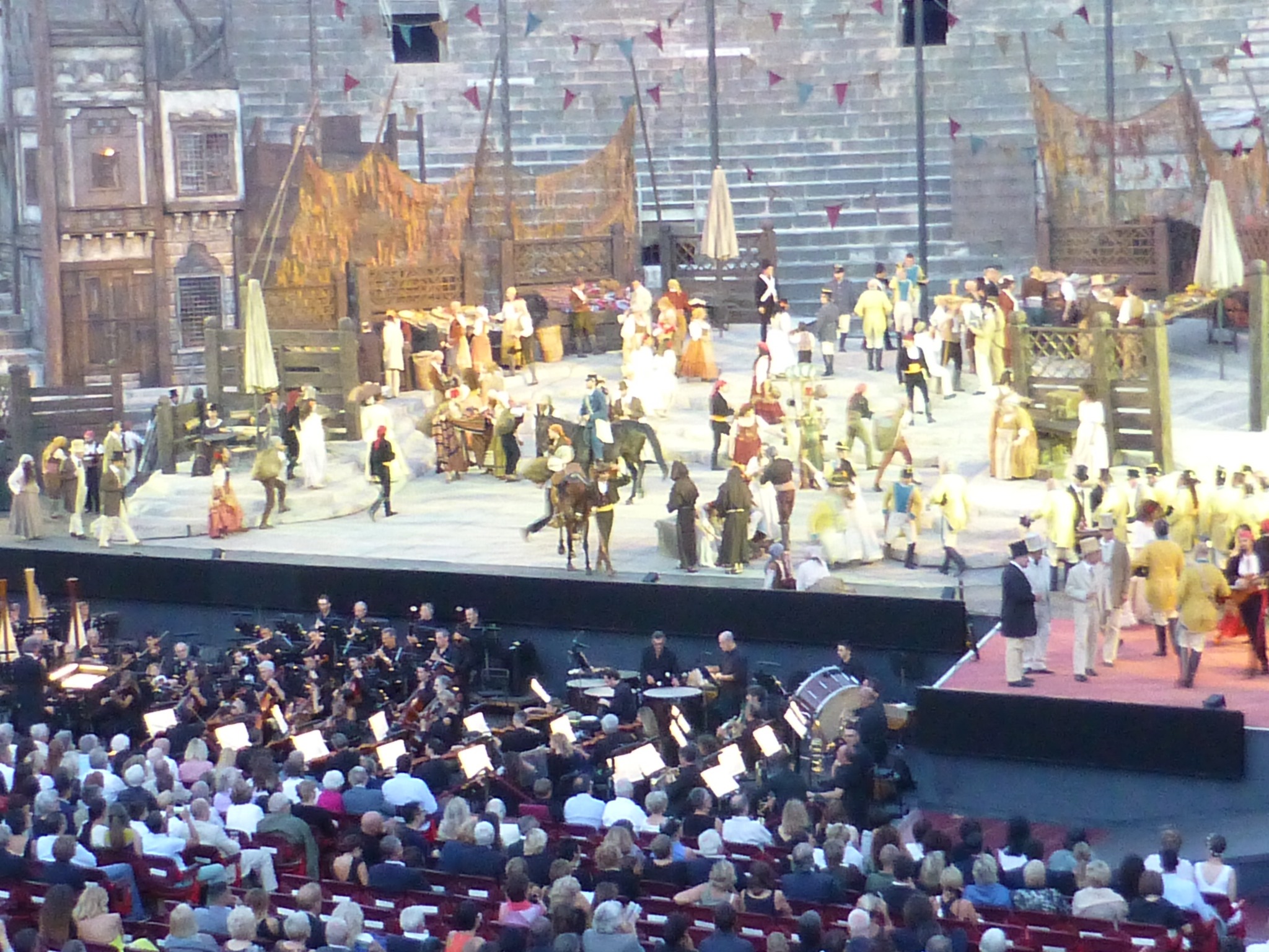 A long-promised trip to the Verona festival started with a near-disaster. Our Monday flight was showing a 50 minutes delay. Not normally a problem, but it was lunch time, so we had lunch and set off for the gate about an hour before the delayed departure time. Arrived at the gate to find the flight had in fact left on time. So rebooked BA for following a.m. and spent the night in an airport hotel. Arrived nearly a day late. Explored Verona by day, watched open air performances of Carmen on Wednesday and Aida on Thursday evening.